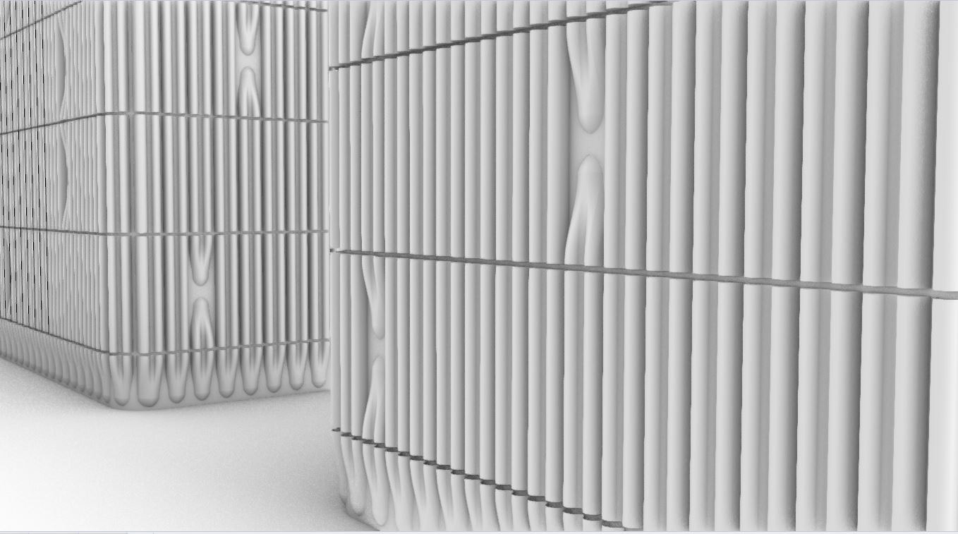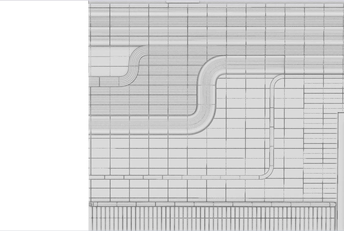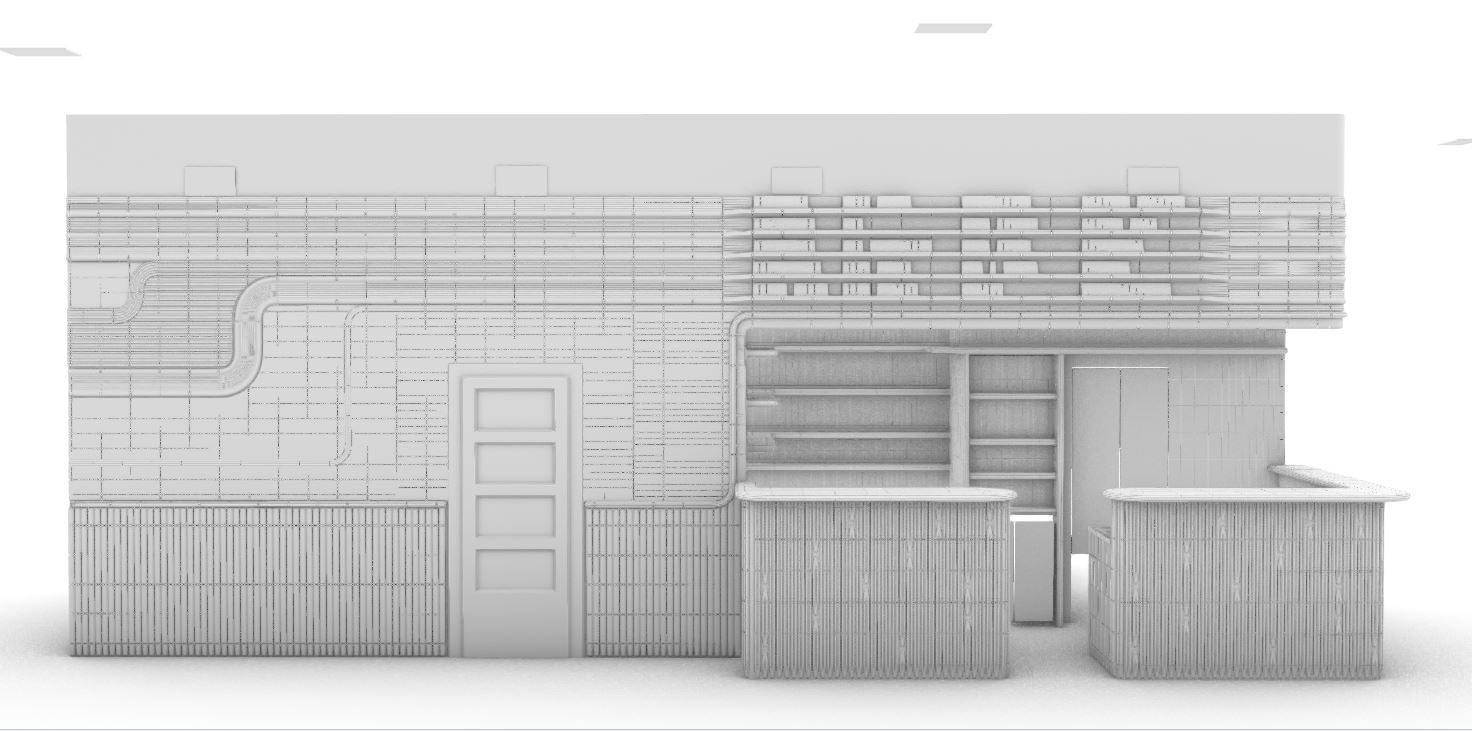 Obklad je nejen nositelem příběhu prostřednictvím dekoru, ale má také schopnost vytvářet prostor s jedinečnou atmosférou, ve kterém se příběhy mohou odehrávat. Rozhodla jsem se pracovat s narativem konkrétního prostoru, “Café & Restaurant Tobruk” v Petrské čtvrti na Praze 1, který je mi blízký. Vnímám, jak lidé tento prostor zaplňují svými příběhy. Návrh obložení vnitřních prostor restaurace pramení z plynutí příběhů v prostoru. Linie reliéfu by měl proudit prostorem směrem k baru, jež vévodí celému dění. Návrh prostoru jsem vytvářela s užitím tvarů z produkce firmy DUC Works z Dolní Bělé u Horní Břízy.